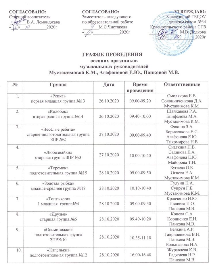 График осенних праздников