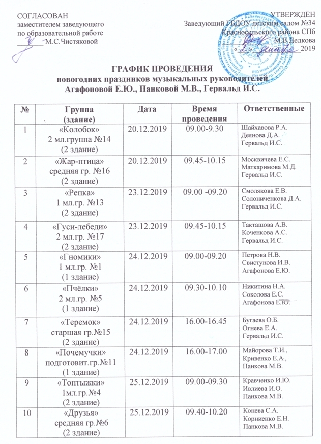 График проведения новогодних праздников