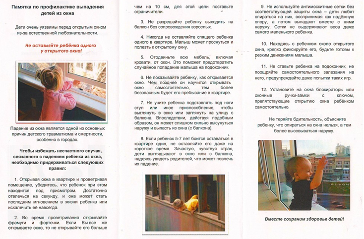 ПАМЯТКА по профилактике выпадения детей из окна